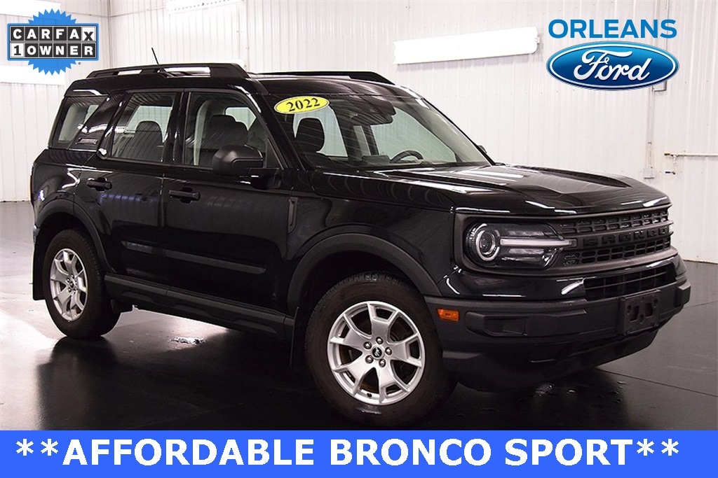 Recent Arrival! CARFAX One-Owner. Shadow Black 2022 Ford Bronco Sport 4WD 8-Speed Automatic This 2022 Ford Bronco Sport in Shadow Black features: Odometer is 3961 miles below market average! 25/28 City/Highway MPG 3.80 Axle Ratio, Equipment Group 100A, Front & Rear Splash Guards, Power door mirrors.