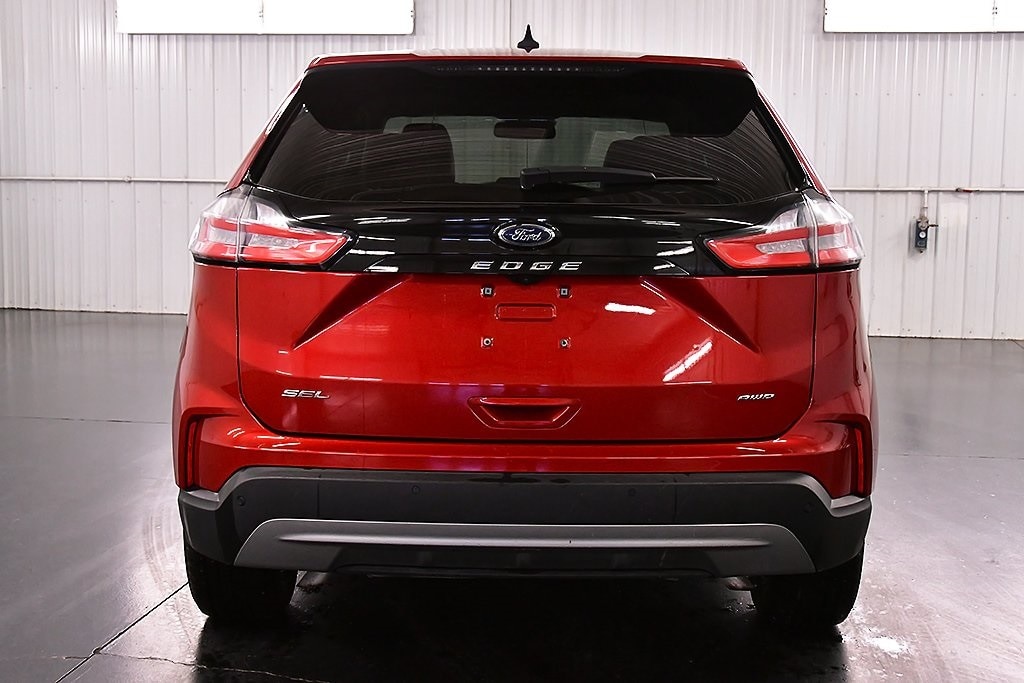 Recent Arrival! CARFAX One-Owner. Rapid Red Metallic 2024 Ford Edge SEL AWD 8-Speed Automatic This 2024 Ford Edge SEL in Rapid Red Metallic features: 21/28 City/Highway MPG 3.80 Axle Ratio, Alloy wheels, Equipment Group 201A, Panoramic Vista Roof, Wheels: 18" Bright-Machined Aluminum.
