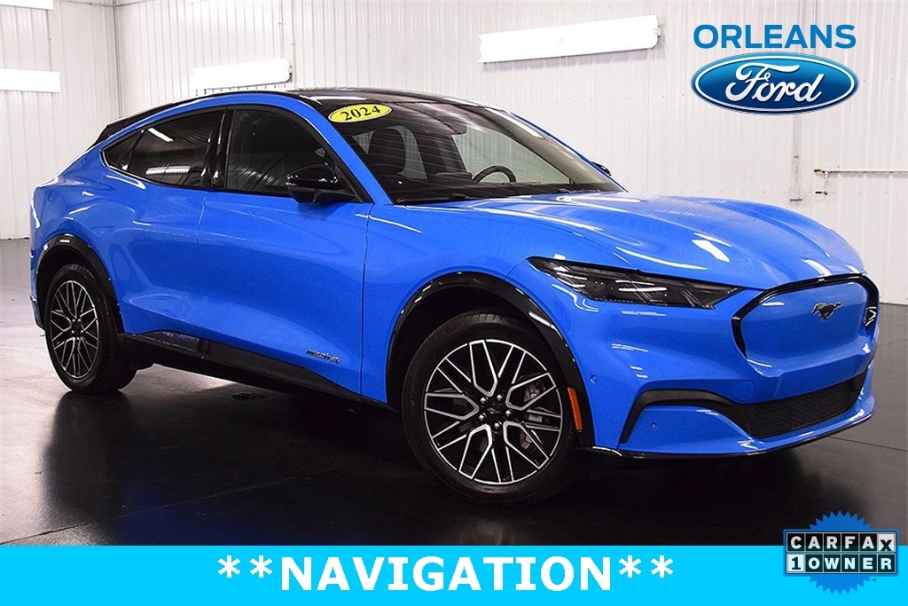CARFAX One-Owner. Clean CARFAX. Grabber Blue Metallic 2024 Ford Mustang Mach-E Premium AWD Single-Speed Automatic This 2024 Ford Mustang Mach-E Premium in Grabber Blue Metallic features: 95/88 City/Highway MPG *PREMIUM*, *ALL WHEEL DRIVE*, *MAGNERIDE DAMPING SYSTEM*, *MME PERFORMANCE UPGRADE*, *BLUECRUISE*, *FACTORY WARRANTY*, *EXTENDED BATTERY*, 10 Speakers, 1st & 2nd Row Floor Liners w/o Carpet Mats, Cargo Area Cover, Cargo Floor Liner, Equipment Group 300A, Interior Protection Package (Pre-Installed), Navigation system: Connected Navigation, SiriusXM Radio w/360L.