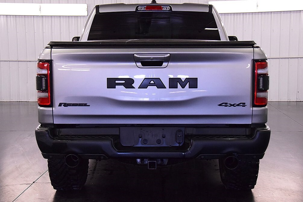 Recent Arrival! Clean CARFAX. Billet Silver Metallic Clearcoat 2019 Ram 1500 Rebel 4WD 8-Speed Automatic This 2019 Ram 1500 Rebel in Billet Silver Metallic Clearcoat features: 115V Auxiliary Rear Power Outlet, 2 USB Full Function/Charge Only Media Hub, 8.4" Touchscreen Display, Air Conditioning ATC w/Dual Zone Control, Apple CarPlay, Auto-Dimming Exterior Driver Mirror, Auto-Dimming Rear-View Mirror, Body Color Door Handles, Exterior Mirrors Courtesy Lamps, Exterior Mirrors w/Supplemental Signals, Foam Bottle Insert (Door Trim Panel), Google Android Auto, Heated Front Seats, Heated Steering Wheel, Integrated Center Stack Radio, ParkSense Front/Rear Park Assist w/Stop, Power Adjustable Pedals, Power Black Trailer Tow Mirrors, Power Heated Fold Away Mirrors, Power-Folding Mirrors, Quick Order Package 27W Rebel, Radio: Uconnect 4 w/8.4" Display, Rain Sensitive Windshield Wipers, Rear Dome w/On/Off Switch Lamp, Rear Underseat Compartment Storage, Rear Window Defroster, Rebel Level 2 Equipment Group, Remote Proximity Keyless Entry, Remote Start System, Security Alarm, Single Disc Remote CD Player, Sun Visors w/Illuminated Vanity Mirrors, Trailer Brake Control, Trailer Tow Group, Trailer Tow Mirrors, Universal Garage Door Opener